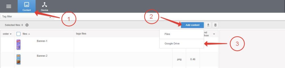 DS-GO.PRO provides the opportunity to use content hosted in the Google Drive cloud service. You can use both single Google Drive files and folders with files.