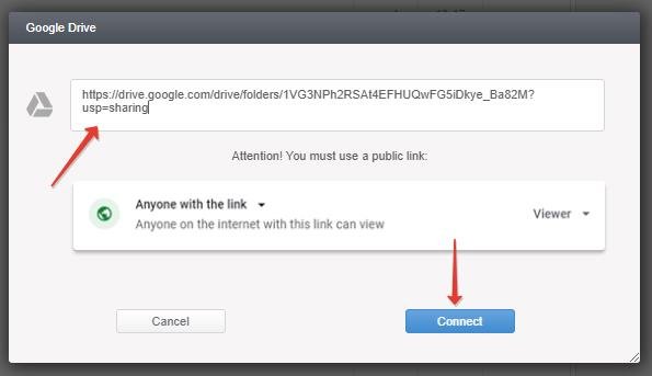 Paste a link to a folder or individual file and click Connect.