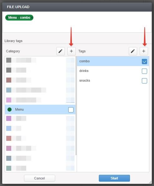 Specify the tags with which the files will be uploaded to the server. In the future, you can add, delete or replace the specified tags with others. To create a new tag or category, press “+”.