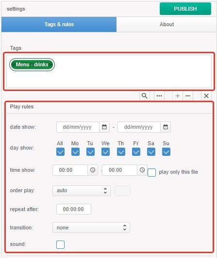 - indicate the tags by which the publication will be carried out. You must specify the tags used for the device template zones to which you want to publish the file.