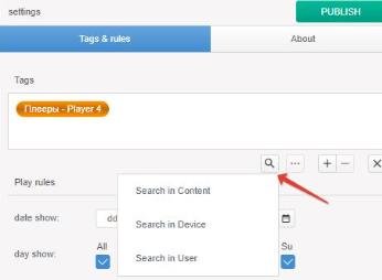 Search for devices, content and users by assigned tags (Tags device, Tags channel, Tags & rules and User Tags).