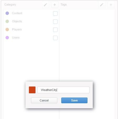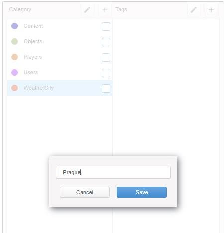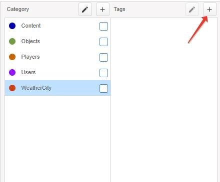 Then, in the new category WeatherCity, create a tag with the name of your city in the following format: Name,RU (separated by commas).