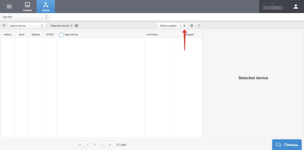 Для регистрации устройства перейдите в раздел Device и нажмите “+”.
