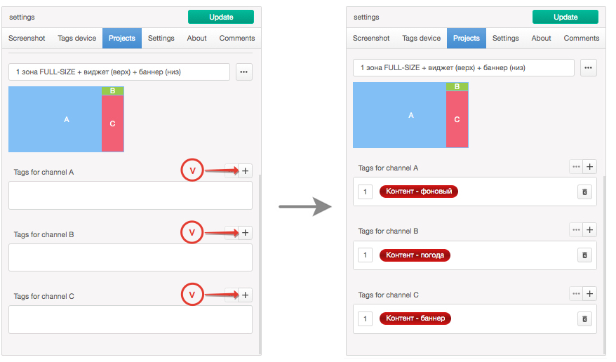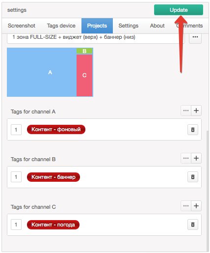 Для этого кликаем на “+” и выбираем тэг Реклама.