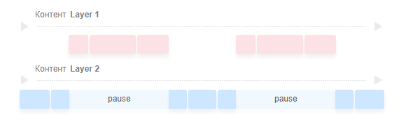 При показе контента в Layer 1, контент опубликованный в Layer 2 будет останаливаться на паузу, за ислючением трансляции Youtube и Интернет-ТВ.