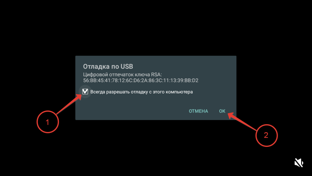 При первом клике на иконку создания скриншота, на экране ТВ появится окошко с предложение разрешить (или запретить) доступ к устройству. Необходимо с помощью пульта ТВ поставить галку Всегда разрешать отладку с этого компьютера и далее выбрать ОК. В противном случае, вы не сможете получать скриншоты плеера в систему управления.